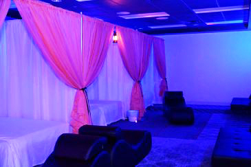 Take the dive into an ocean of orgasms in a play area of epic proportions! Boasting a single 40' x 12' bed in the center and surrounded by 20 additional sexy spaces, this room has the capacity for over 200 sexy souls to submerge themselves in a sea of sex! A tidal wave of desire will rush over the room and crash amongst the pile of passionate souls that lie beneath the depths of the Plunge Pool!